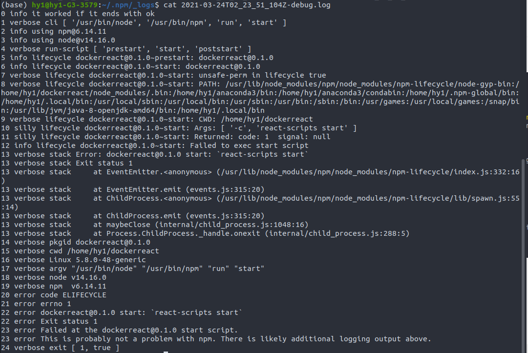 npm을 실행하려는데 이런 오류가 떴습니다.디버그 로그를 살펴보니