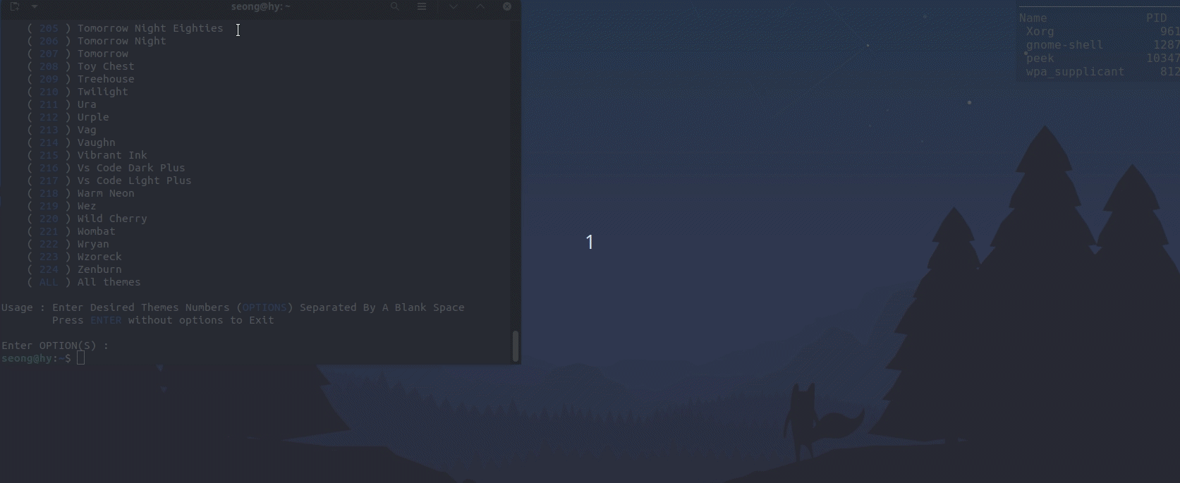 Enter options 에 원하는 테마번호를 입력하면 됩니다.(저는 55번(Flat Remix )을 입력했습니다. )
