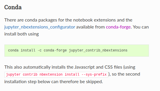 $ conda install -c conda-forge jupyter_contrib_nbextensions