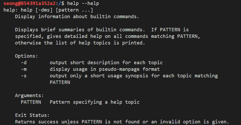 아래는 help 명령어에 대한 도움말이다.