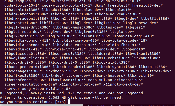$ sudo apt-get autoremove --purge 'cuda*'