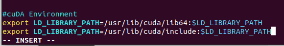 $ echo 'export LD_LIBRARY_PATH=/usr/lib/cuda/include:$LD_LIBRARY_PATH' >> ~/.bashrc